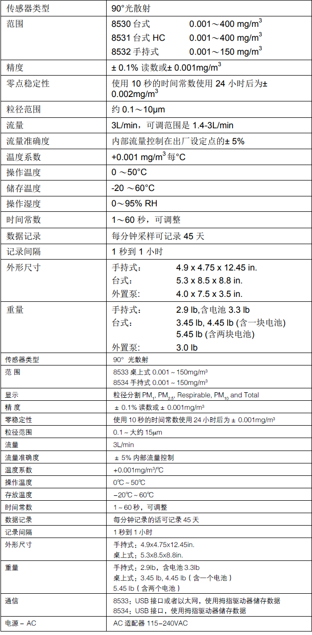 直讀式粉塵測量儀8530/8532/8533/8534